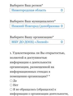 Добрый день, уважаемые родители! С целью повышения качества условий оказания услуг просим Вас принять участие в анонимном анкетировании. Ваше мнение нам очень важно и будет учтено в дальнейшей работе.